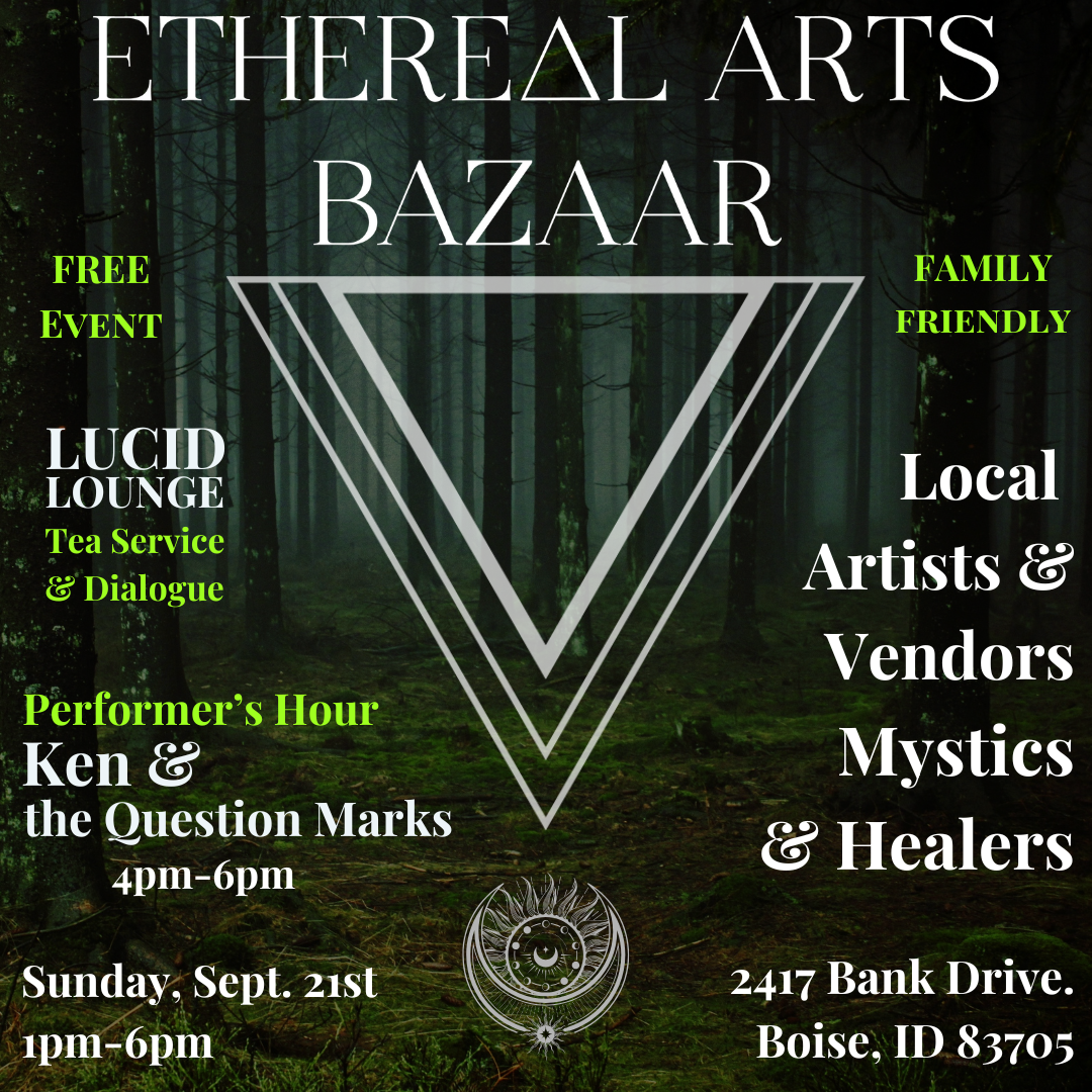 The Ethereal Arts Bazaar, celebrating Boise’s spirituality, community, and the unseen realms. Join us for an afternoon of fun, with a variety of the Treasure Valley’s finest craft vendors, psychic readers, and our unique “Performer’s Hour”. Delicious food served with Vegetarian options. At The Lounge at the End of the Universe!